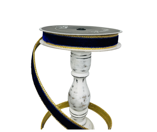 1" x 10yd Farrisilk Royal Velvet Double-Sided Ribbon - Elegant Navy Blue & Gold Trim-RG809-21