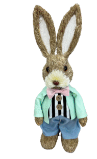 Bring playful sophistication to your Easter decor with this 12" Styrofoam Decor Bunny, dressed in a mint green jacket, striped shirt, pastel blue pants, and a charming pink bowtie. Lightweight yet sturdy, this adorable bunny is perfect for adding personality to mantles, tabletops, centerpieces, or Easter vignettes. Its whimsical details and colorful design make it a standout piece for spring and Easter displays. Ideal for decorating your home, office, or event space, this dapper bunny figurine is ready to delight all season long!