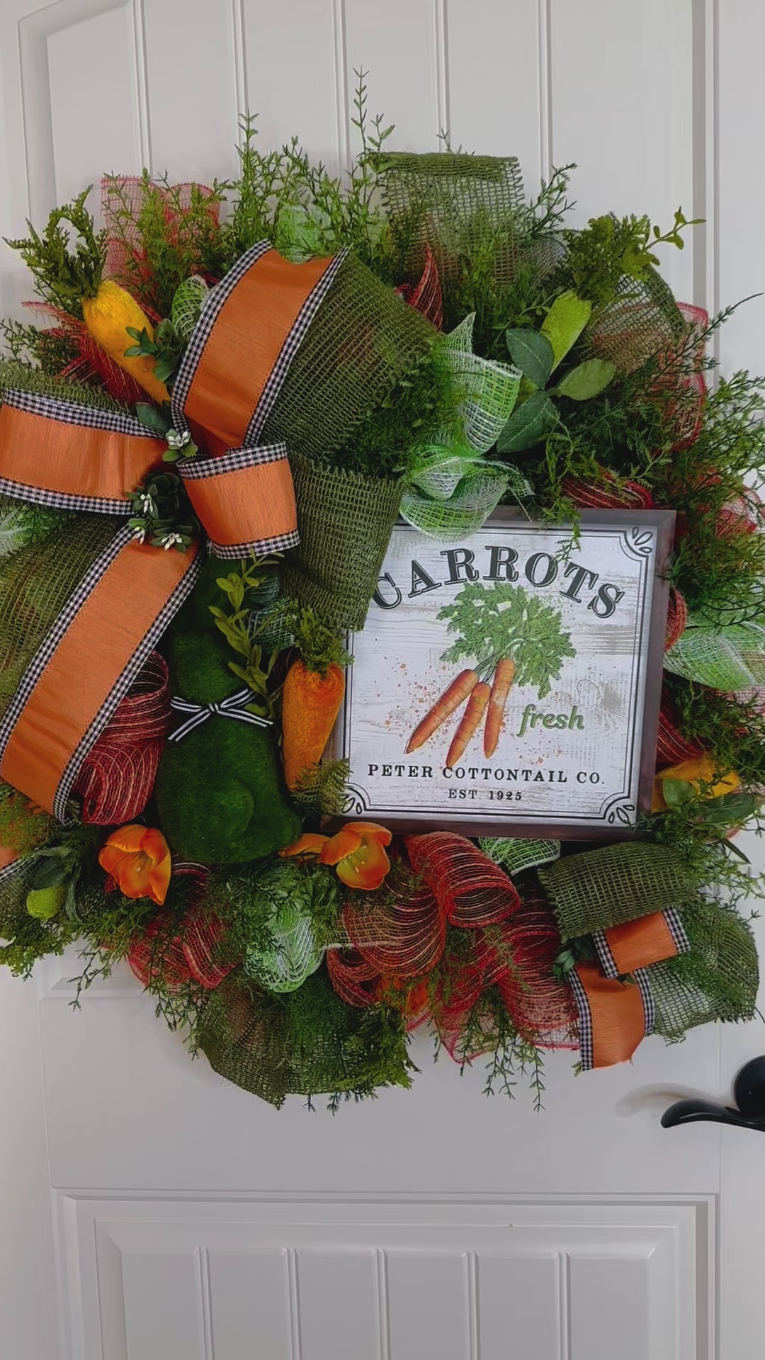 Easter Bunny Carrot-Themed Deco Mesh Wreath - Green & Orange Easter Spring Decor - TCT Crafts Seasonal Decor