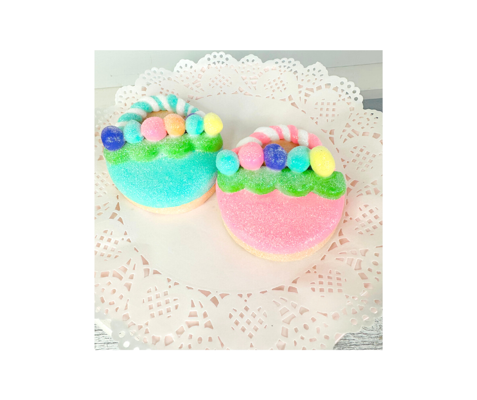 This listing is for two fake Easter basket cookies just perfect for your tiered tray or kitchen decor. You will get one pink & one blue cookie. The cookies measure approximately 3.5” by 4” and are made from clay. As with any handmade clay art, there may be slight imperfections and no two are exactly the same.