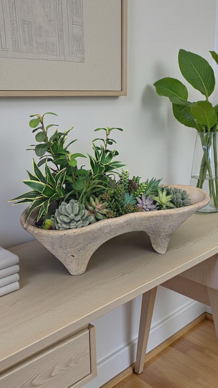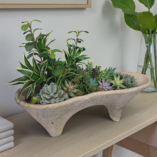 Succulent Arrangement in Cement Planter | Neutral Modern Centerpiece