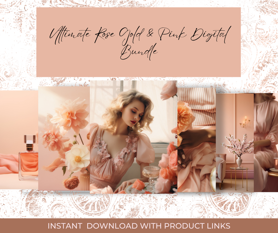 Introducing the Ultimate Rose Gold & Pink Digital Bundle, the perfect collection for bloggers, small business owners, content creators, and designers! This instant download gives you access to 159 digital items designed to elevate your branding, social media, and creative projects with a soft, elegant touch of rose gold and pink accents.