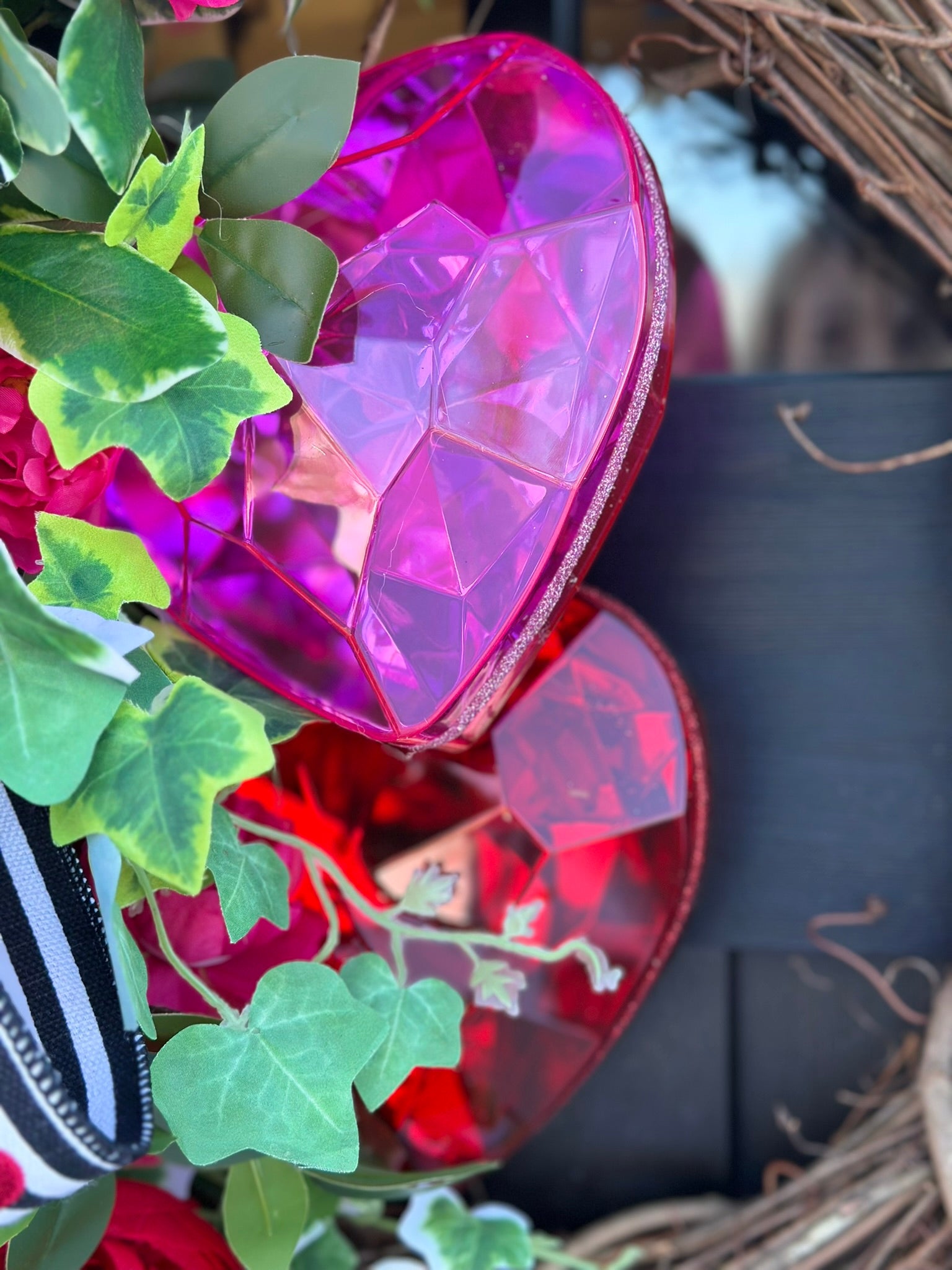 Add charm and sparkle to your front door or home with this romantic wreath that embodies the spirit of Valentine's Day.